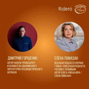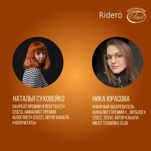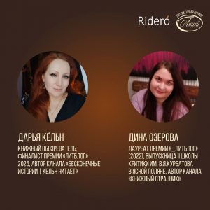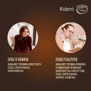 Издательский сервис Rideró традиционно выступает партнёром и основной площадкой подачи заявок на Литературную премию «Лицей» имени Александра Пушкина для молодых прозаиков и поэтов, которая в этом году отмечает десятилетний юбилей. Специальная номинация Rideró «Выбор книжных блогеров», придуманная издательским сервисом в 2021 году, проводится в рамках премии «Лицей» в шестой раз.