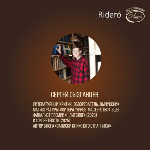 - Сергей Сызганцев — литературный критик, обозреватель, выпускник магистратуры «Литературное мастерство» ВШЭ, финалист премии «_Литблог» (2023) и «Гипертекст» (2025), автор блога «Записки книжного странника»